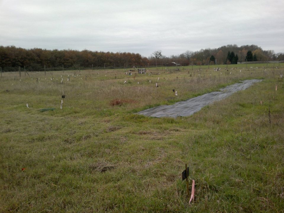 Ce projet familial a débuté en 2011. Il consiste à utiliser une terre agricole pour recréer un écosystème riche en diversité biologique et productif en éléments utiles, notamment en fruits, légumes et champignons. Nous sommes partis d'une parcelle de 2500m² que nous avons entièrement clôturée pour la protéger des lapins et des chevreuils pendant sa phase de croissance. Après avoir observé les vents, l'ensoleillement, la végétation en place, ainsi que la qualité et le pH du sol, nous avons réalisé un design de la parcelle et planté près de 200 plantes, arbustes, petits, moyens et grands arbres. Nous avons installé un arrosage au pied de chaque nouvelle plantation et creusé une mare (à la main !) pour augmenter la biodiversité. Tout cela demande une présence et une observation régulières et passionnantes.